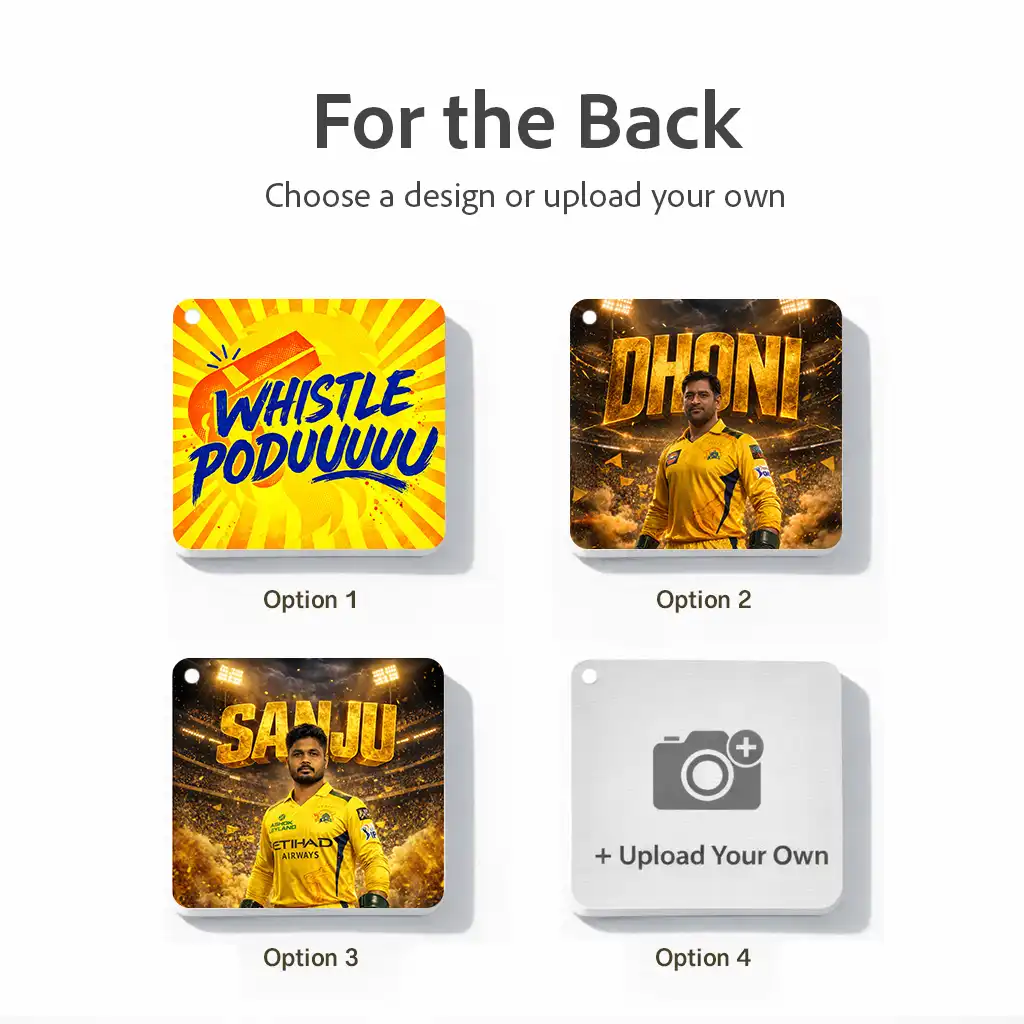 CSK Fan Keychain – Chennai Super Kings Keychain, Customisable with Your Photo and Name, Acrylic Keychain for Men, Women, Kids – IPL Cricket Team Merchandise