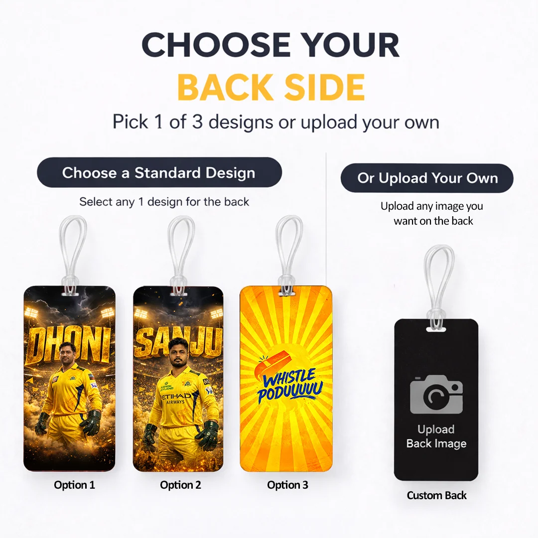CSK Fan Luggage Tag – Chennai Super Kings Travel Tag, Customisable with Your Photo and Name, Personalised Tag for Men, Women, Kids – IPL Cricket Team Merchandise