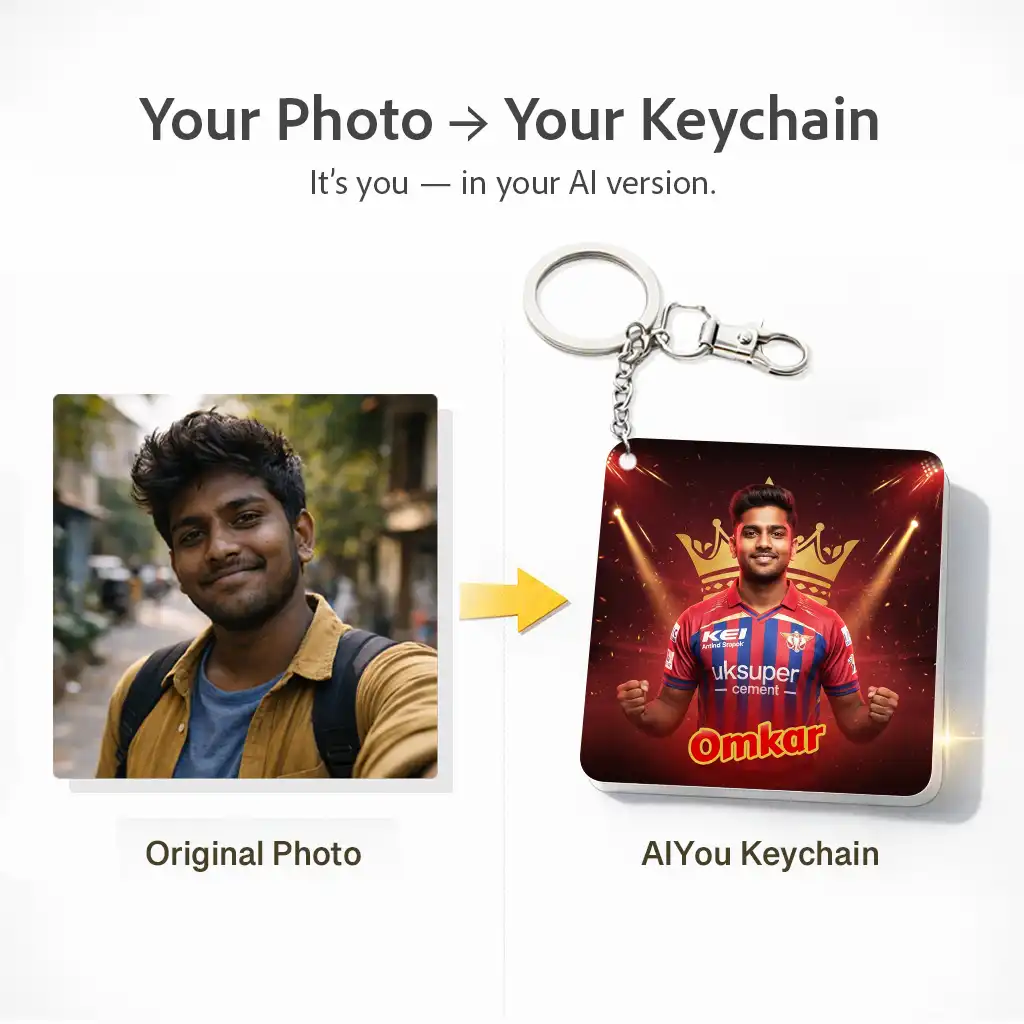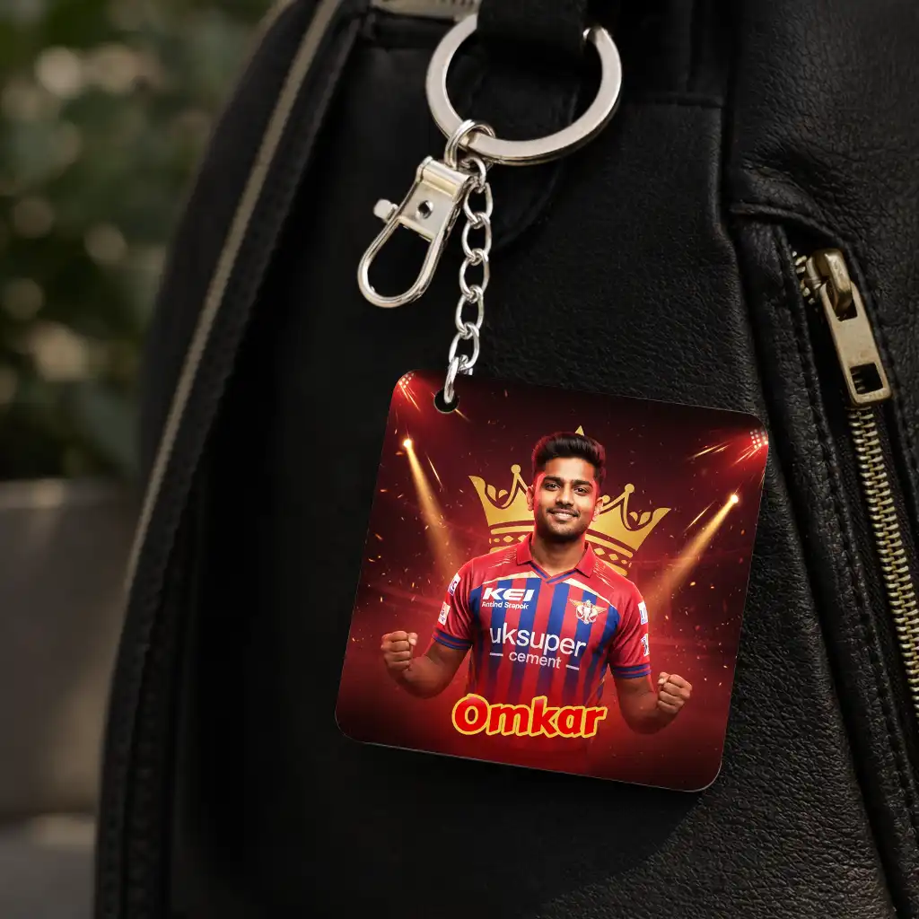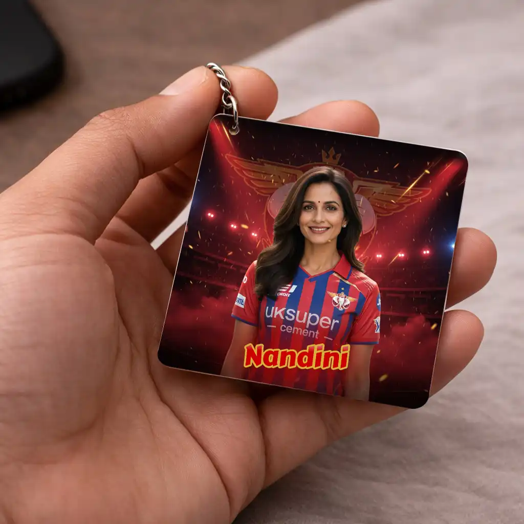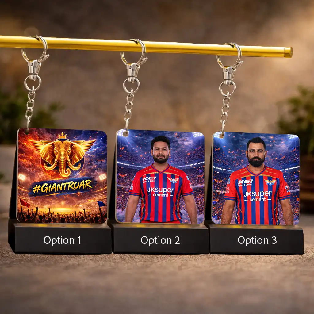 LSG Fan AI Keychain – Lucknow Super Giants Keychain, Customisable with Your AI Avatar and Name, Acrylic Keychain for Men, Women, Kids – IPL Cricket Team Merchandise