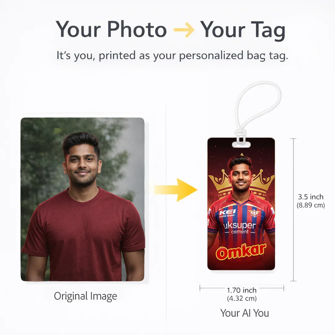 LSG Fan AI Luggage Tag – Lucknow Super Giants Travel Tag, Customisable with Your AI Avatar and Name, Personalised Tag for Men, Women, Kids – IPL Cricket Team Merchandise