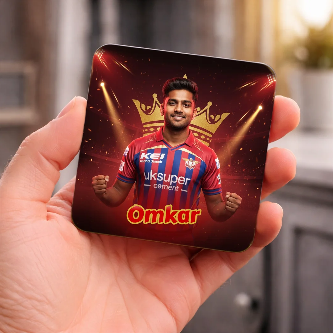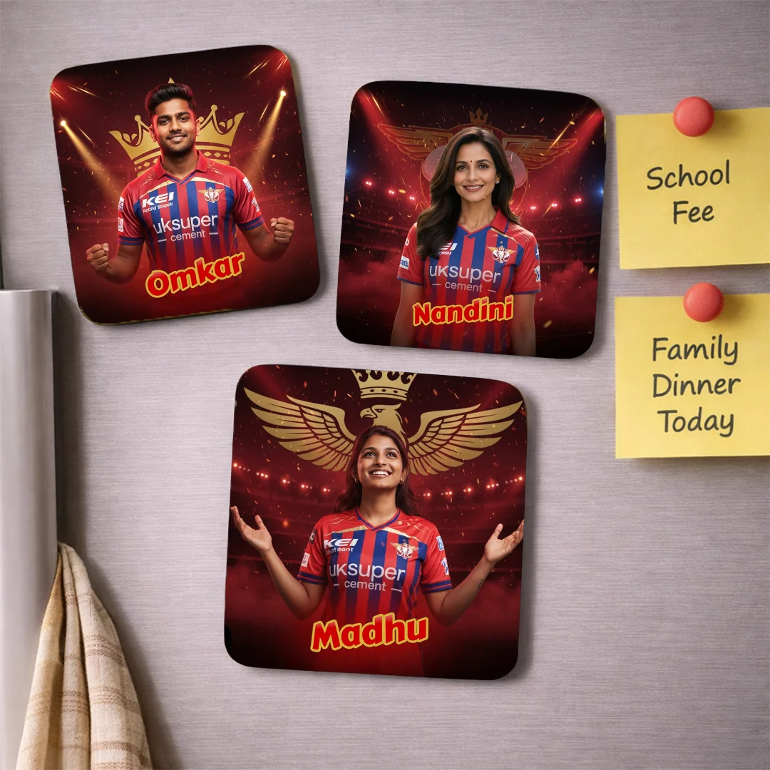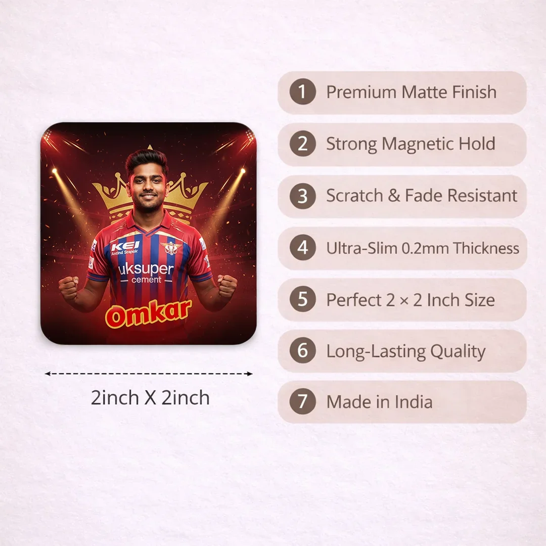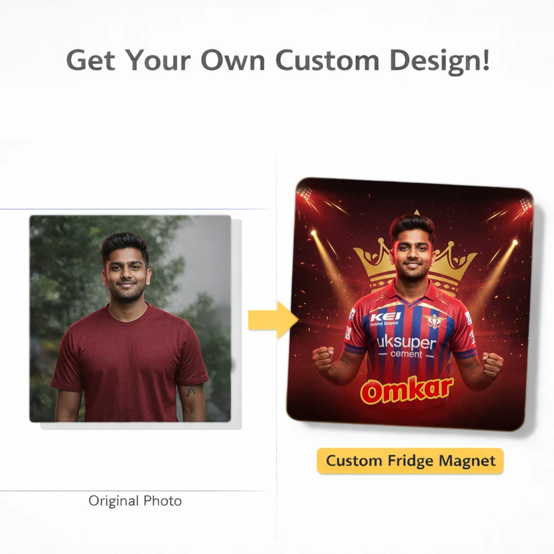 LSG Fan AI Magnet – Lucknow Super Giants Fridge Magnet, Customisable with Your AI Avatar and Name, Personalised Refrigerator Magnet – IPL Cricket Team Merchandise