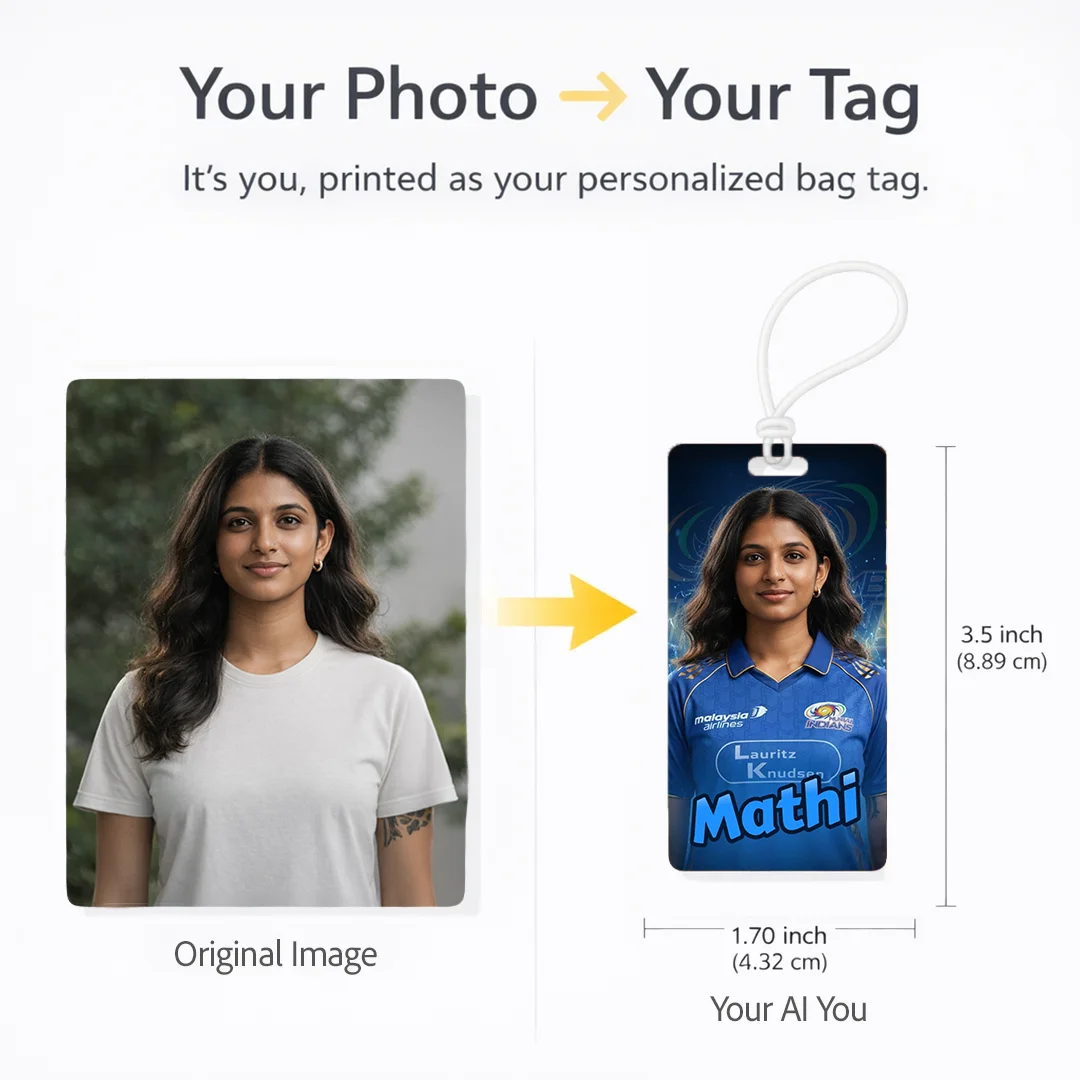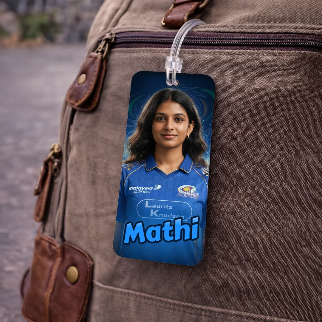 MI Fan AI Luggage Tag – Mumbai Indians Travel Tag, Customisable with Your AI Avatar and Name, Personalised Tag for Men, Women, Kids – IPL Cricket Team Merchandise