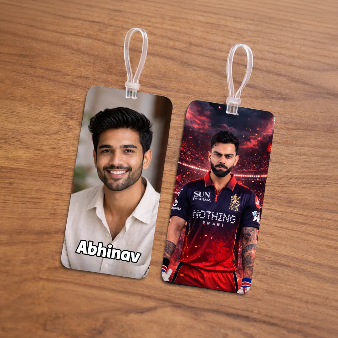 RCB Fan Luggage Tag – Royal Challengers Bengaluru Travel Tag, Customisable with Your Photo and Name, Personalised Tag for Men, Women, Kids – IPL Cricket Team Merchandise