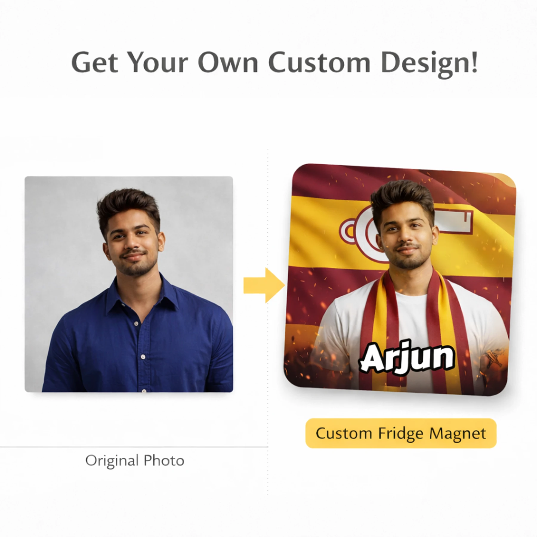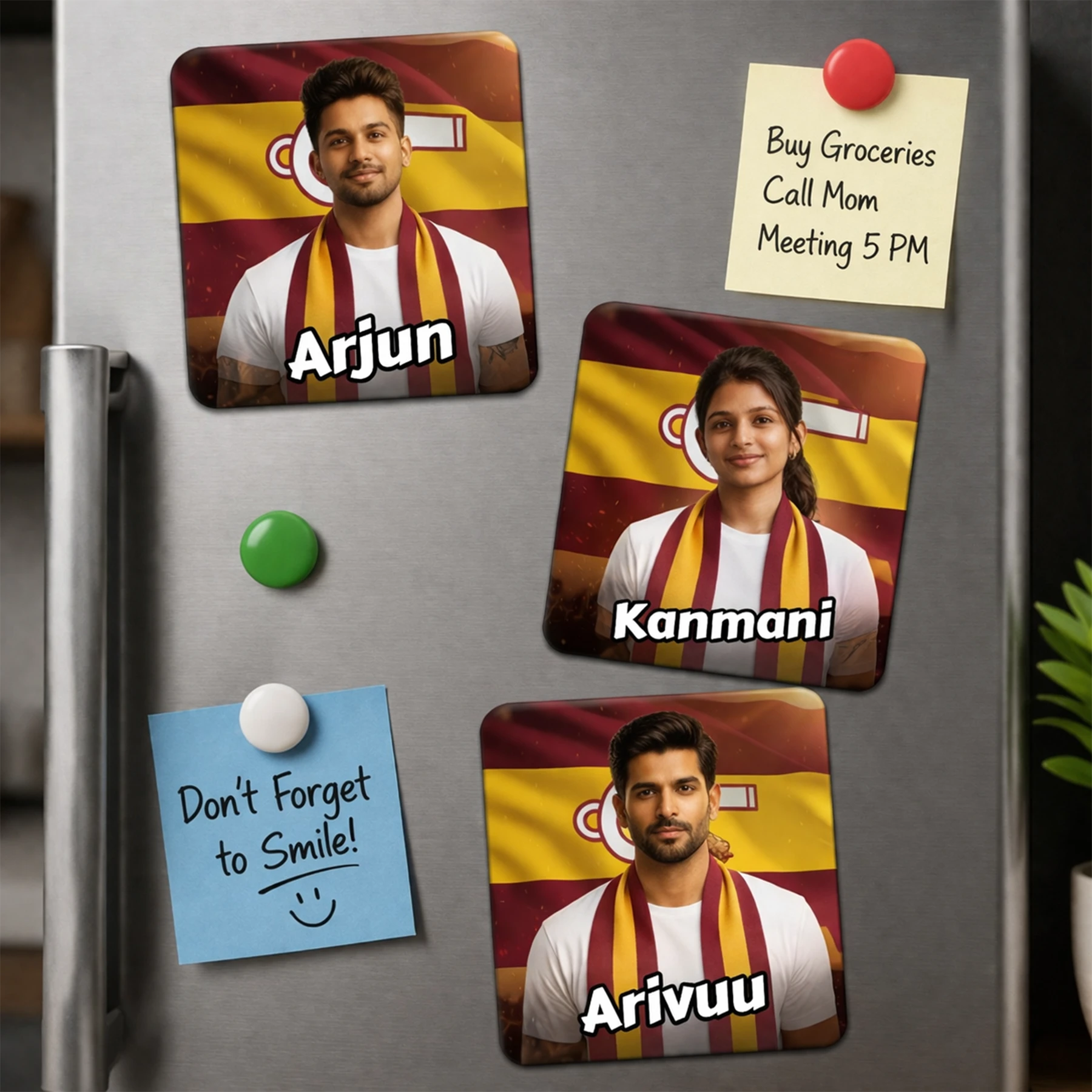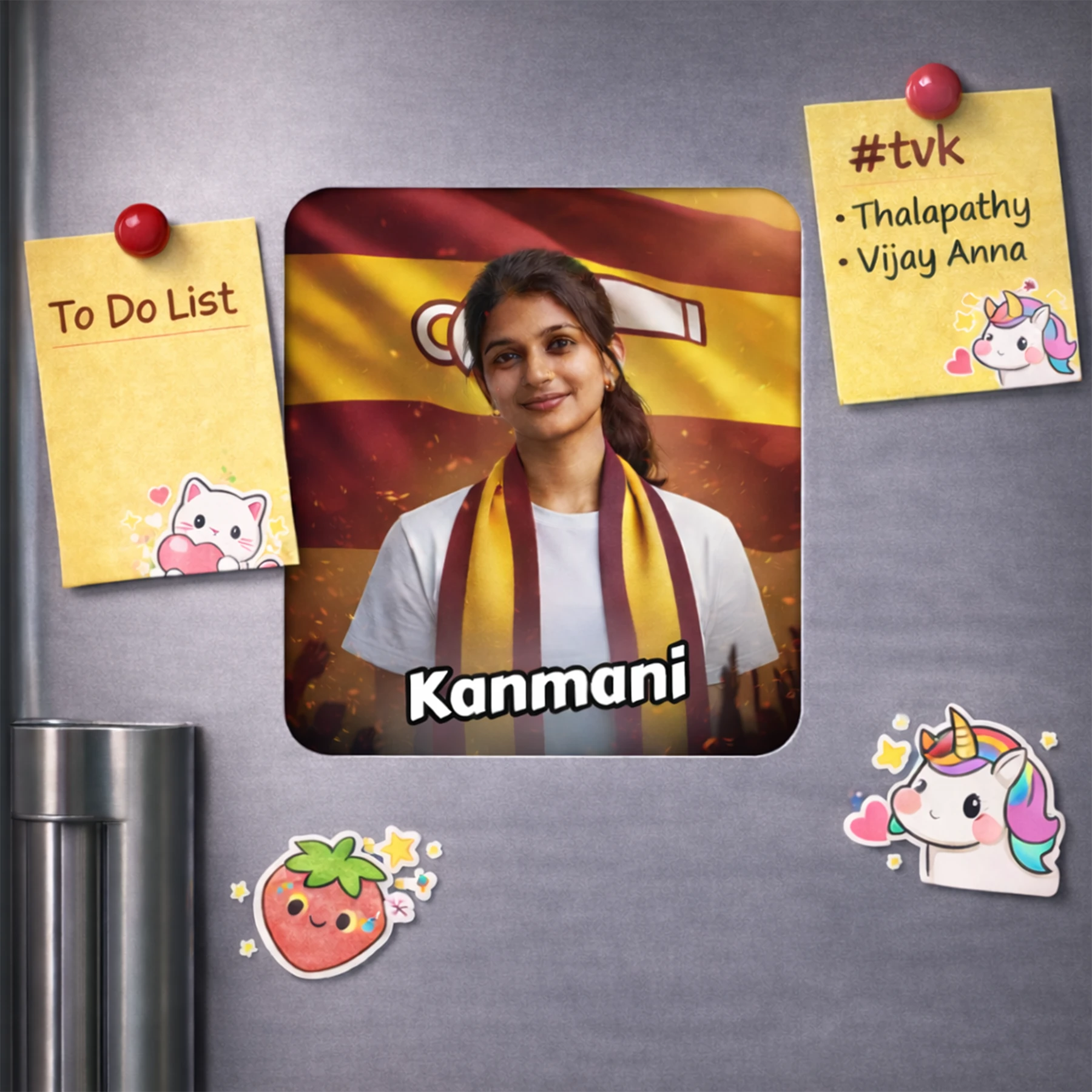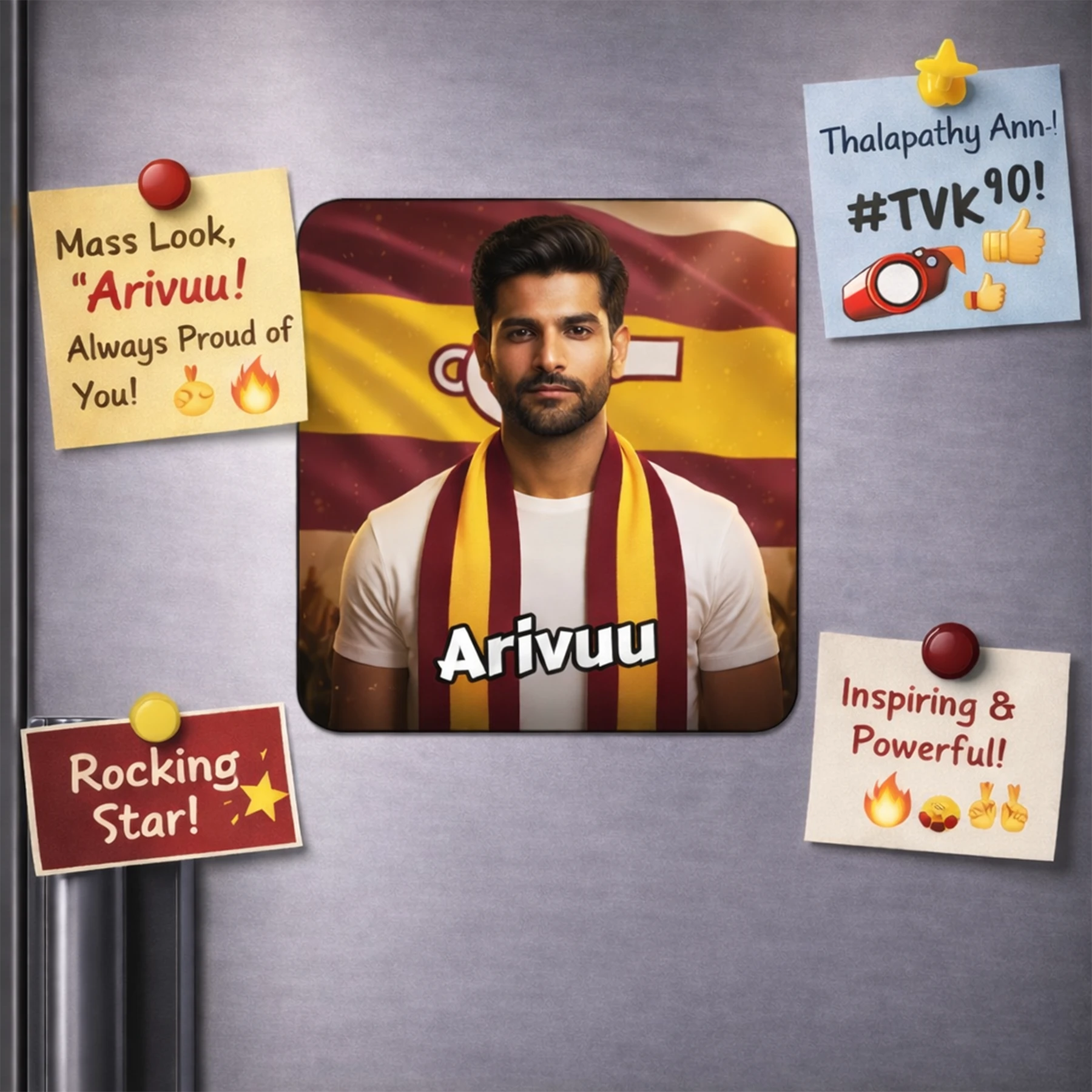 TVK AI Fridge Magnet – Tamilaga Vettri Kazhagam Fridge Magnet, Customisable with Your AI Avatar and Name, Personalised Refrigerator Magnet for Supporters & Fans – TVK Merchandise