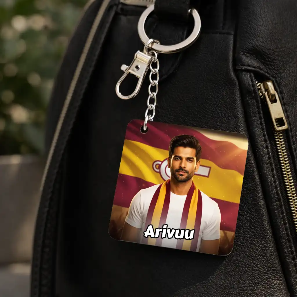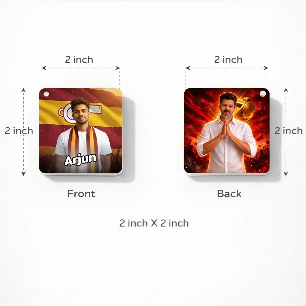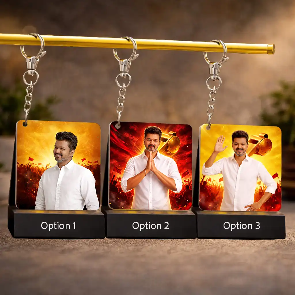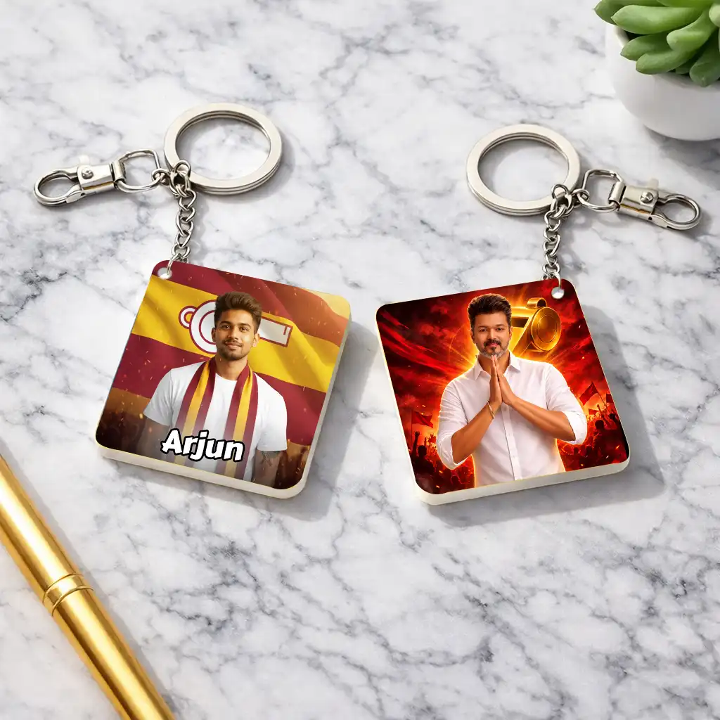 TVK AI Keychain – Tamilaga Vettri Kazhagam Keychain, Customisable with Your AI Avatar and Name, Acrylic Personalised Keychain for Supporters & Fans – TVK Merchandise