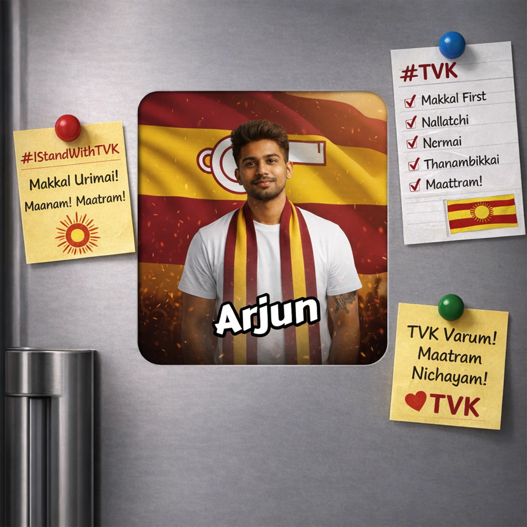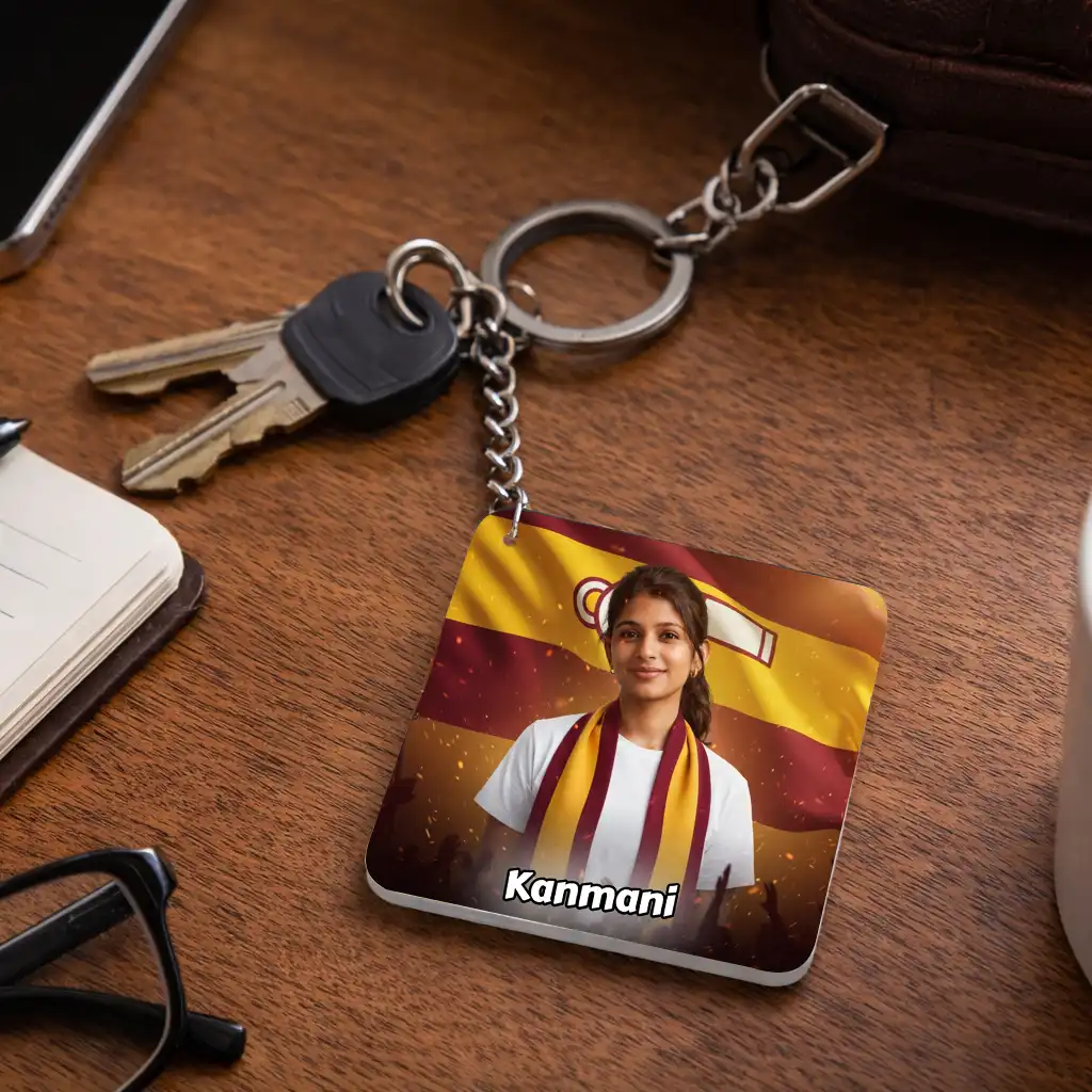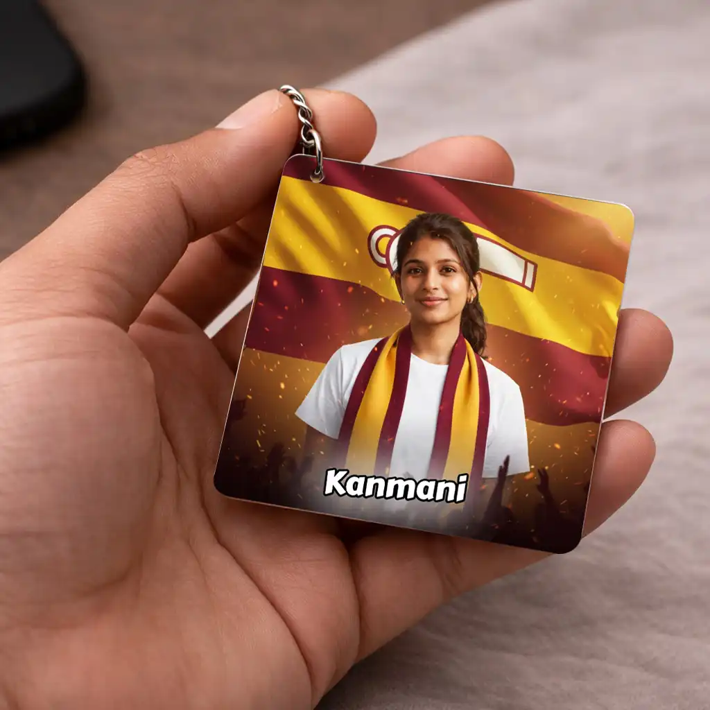 TVK AI Keychain – Tamilaga Vettri Kazhagam Keychain, Customisable with Your AI Avatar and Name, Acrylic Personalised Keychain for Supporters & Fans – TVK Merchandise